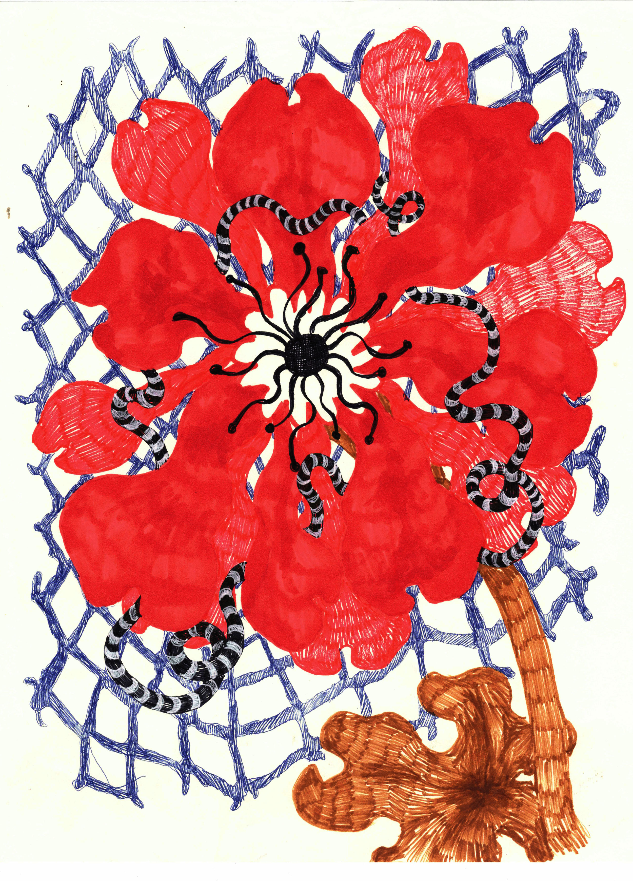 Graphite, alcohol marker, felt-tip pen, ball-point pen, paper.